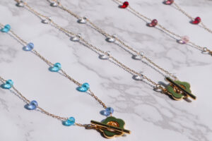 まずは占いを通して「今のあなた」に合う色やモチーフを導き出します。オーラやお名前などから導かれるエネルギーをもとに、アクセサリーの方向性を確認します。お守りのように身につけられる特別な一品となるよう、丁寧に鑑定いたします。